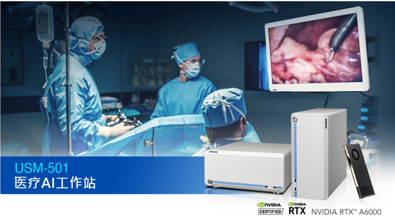 推出全新医疗级AI工作站USM-501,作为研华首款经过 NVIDIA认证系统™认证的医疗级计算机,是加速医疗AI应用的理想选择,将为医院手术设备、医疗诊断仪器及实验室环境提供搭载边缘人工智能技术的平台,借由高速信息运算及分析能力,快速呈现清晰与精密的影像画面,协助医生精准判断病灶并提升病患诊疗效率。