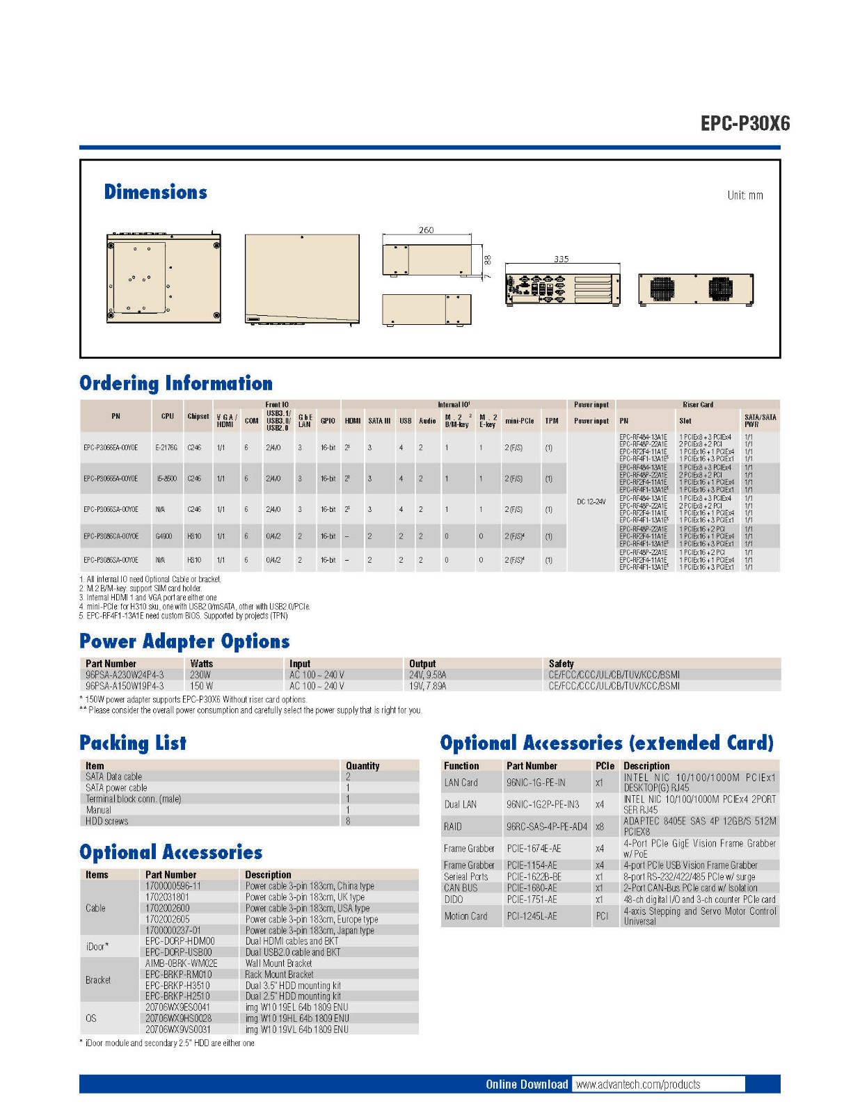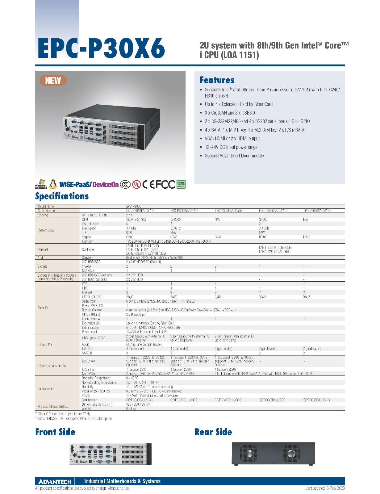 研华EPC-P3066是一款行业专用的嵌入式工控机,尺寸为335x260x88mm。适配Intel® 第8/9代 Core™ i 系列处理器和C246芯片组。可扩展多种PCIe/PCI方案,最多可支持4张扩展卡。采用12V DC-IN供电,超薄设计整机,拥有丰富的接口。工业级品质,稳定可靠,支持上架,是理想的工业、AI等行业嵌入式工控机解决方案。