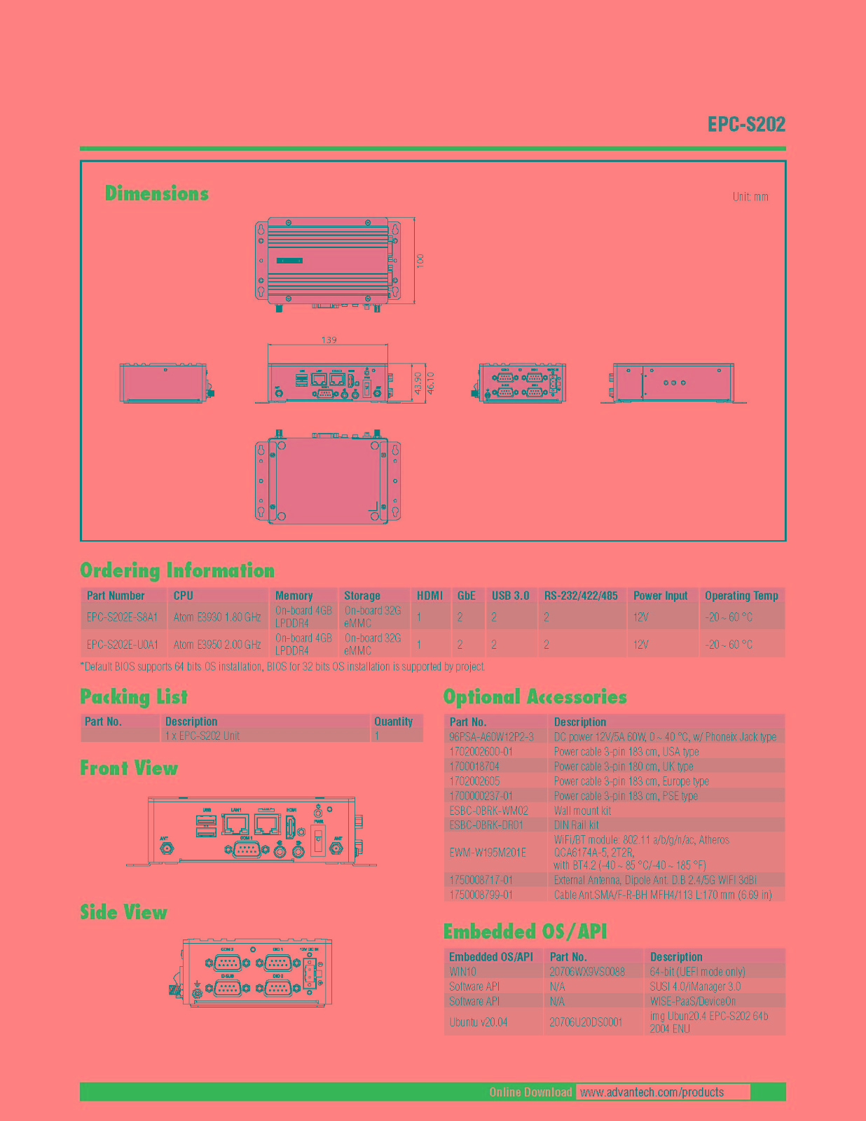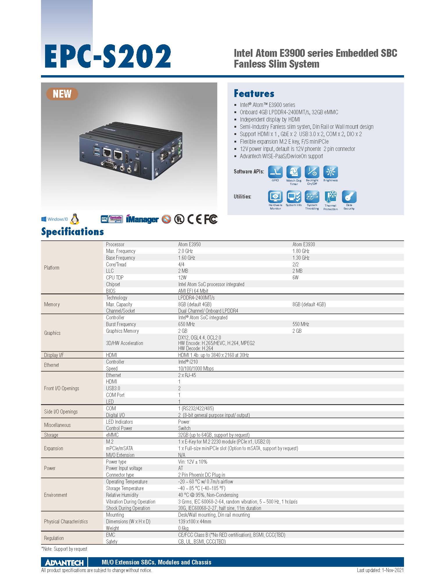 EPC-S202 无风扇掌上型嵌入式工控机,强固可靠,性价比高。板载内存存储,-20-60℃宽温,双LAN,是户外网关,数据采集的理想之选。