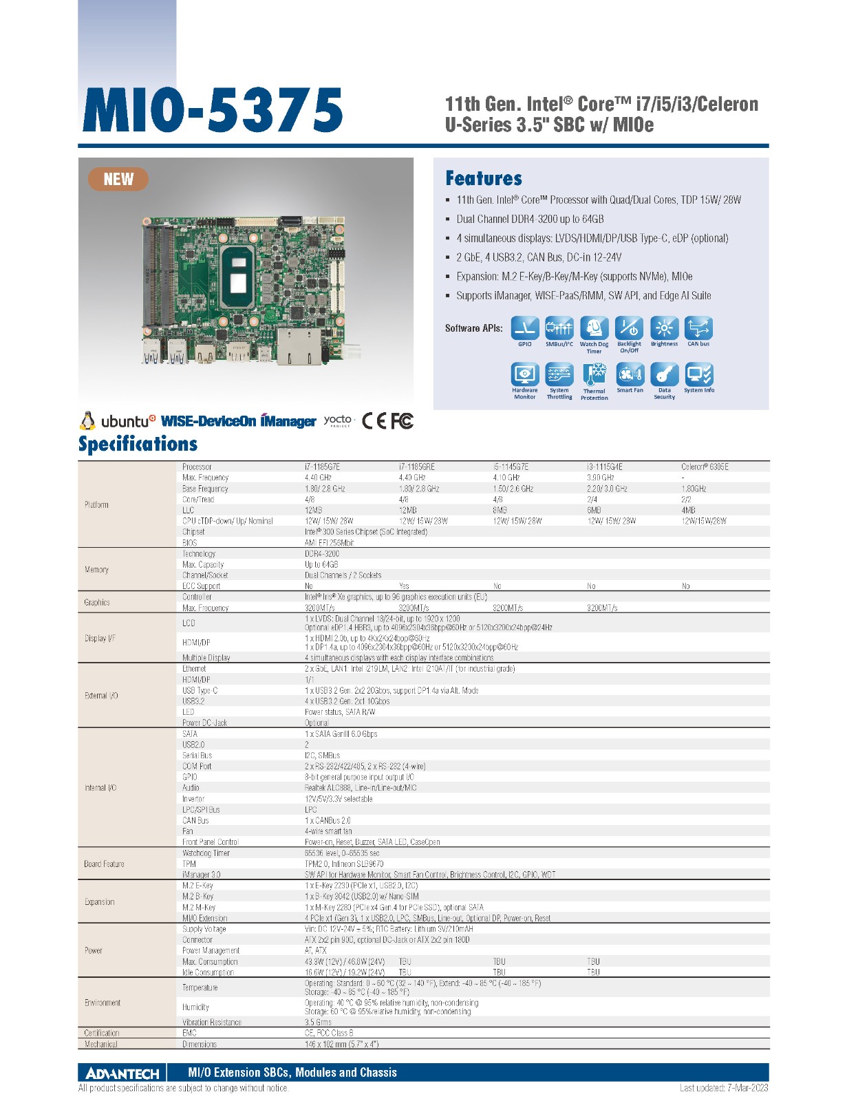 研华MIO-5375单板电脑,性能提升40%,支持8K显示,10TOPS AI算力,2 LAN,4 COM等丰富I/O,是机器视觉,自动化及医疗影像的理想之选。