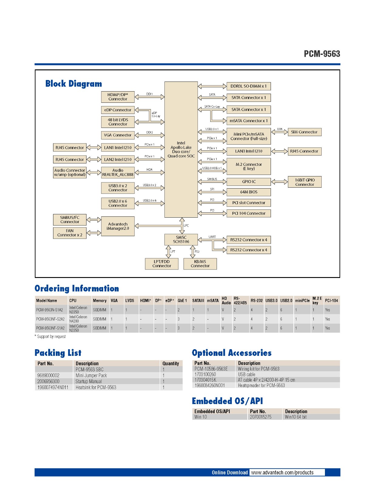 DirectX11,OpenGL3.2,OpenCL1.2,多显示器:VGA + LVDS / eDP + HDMI * / DP * 支持多达3个Intel GbE,6个COM,1个Mini PCIe,1个M.2电子钥匙,1 mSATA,PCI-104和1个PCI插槽 高传输速度COM端口设计(传输速率高达1 Mbit / s)设计符合CE / FCC 支持iManager,WISE-Paas / RMM,嵌入式软件API