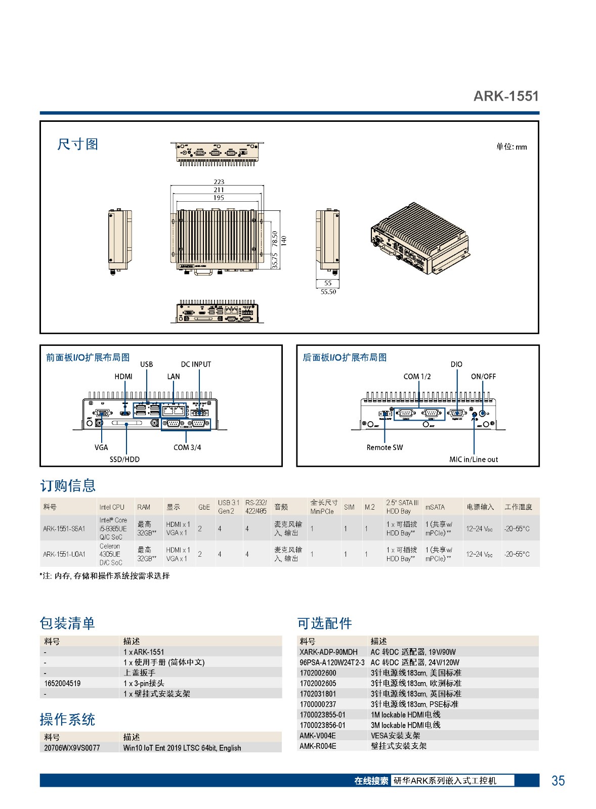 小巧设计,性能强悍,搭载Intel第8代处理器;多重存储选择,可拆卸HDD/SSD驱动器支架;工业级设计,具有丰富I/O接口支持,适用于小型自动化控制和自助服务终端系统。