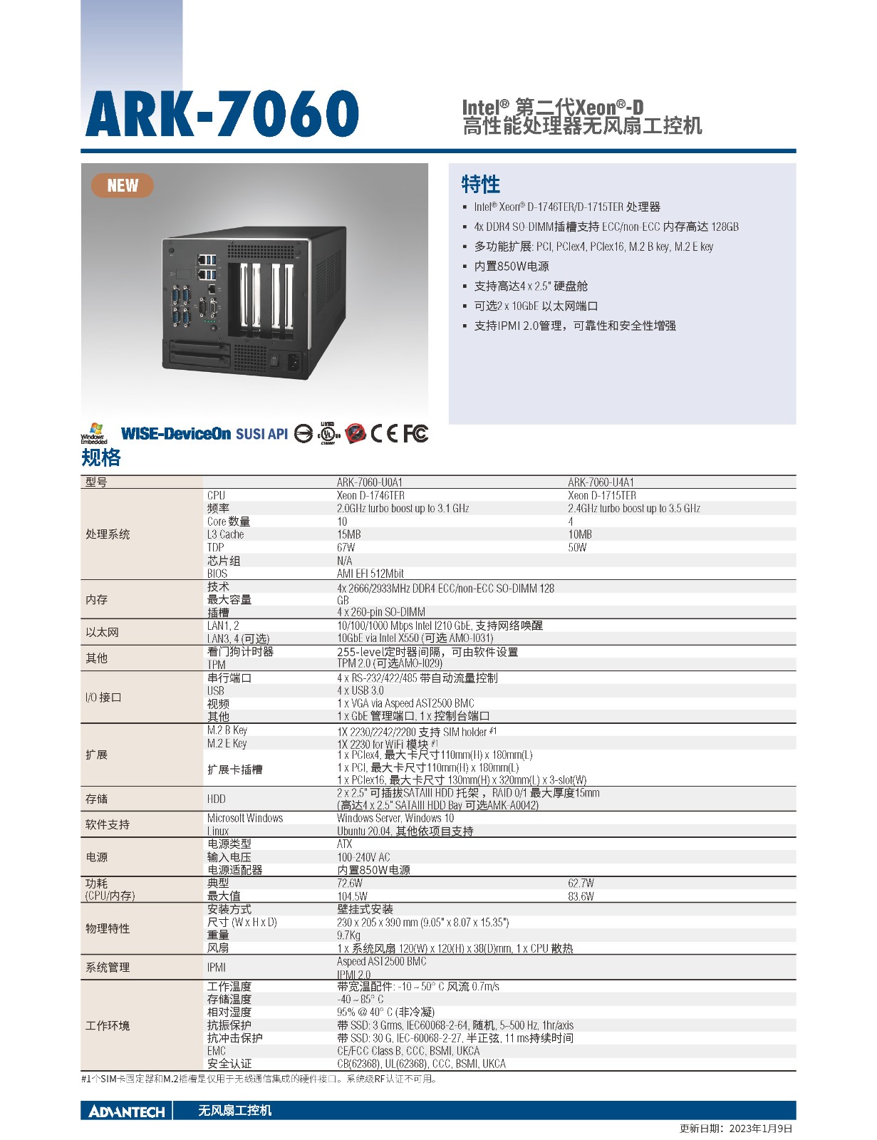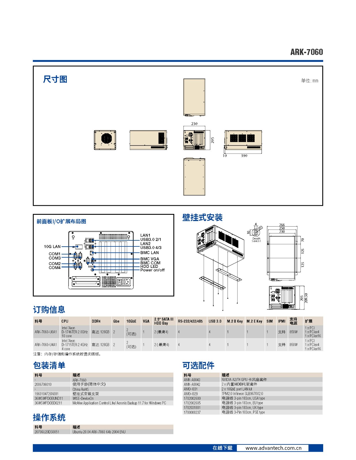 采用Intel二代 Xeon D-1700系列处理器,最高可达10核 4x DDR4 SO-DIMM插槽支持ECC/非ECC内存,最大可达128GB 通用扩展选项PCI, PCIex4, PCIex16, M.2 B Key和E Key 支持PCIex16高性能显卡,最高可达350W 2个10GbE端口,用于快速数据通信(可选) 高达4 x 2.5“SATAIII硬盘舱 支持IPMI 2.0管理,可靠性和安全性增强