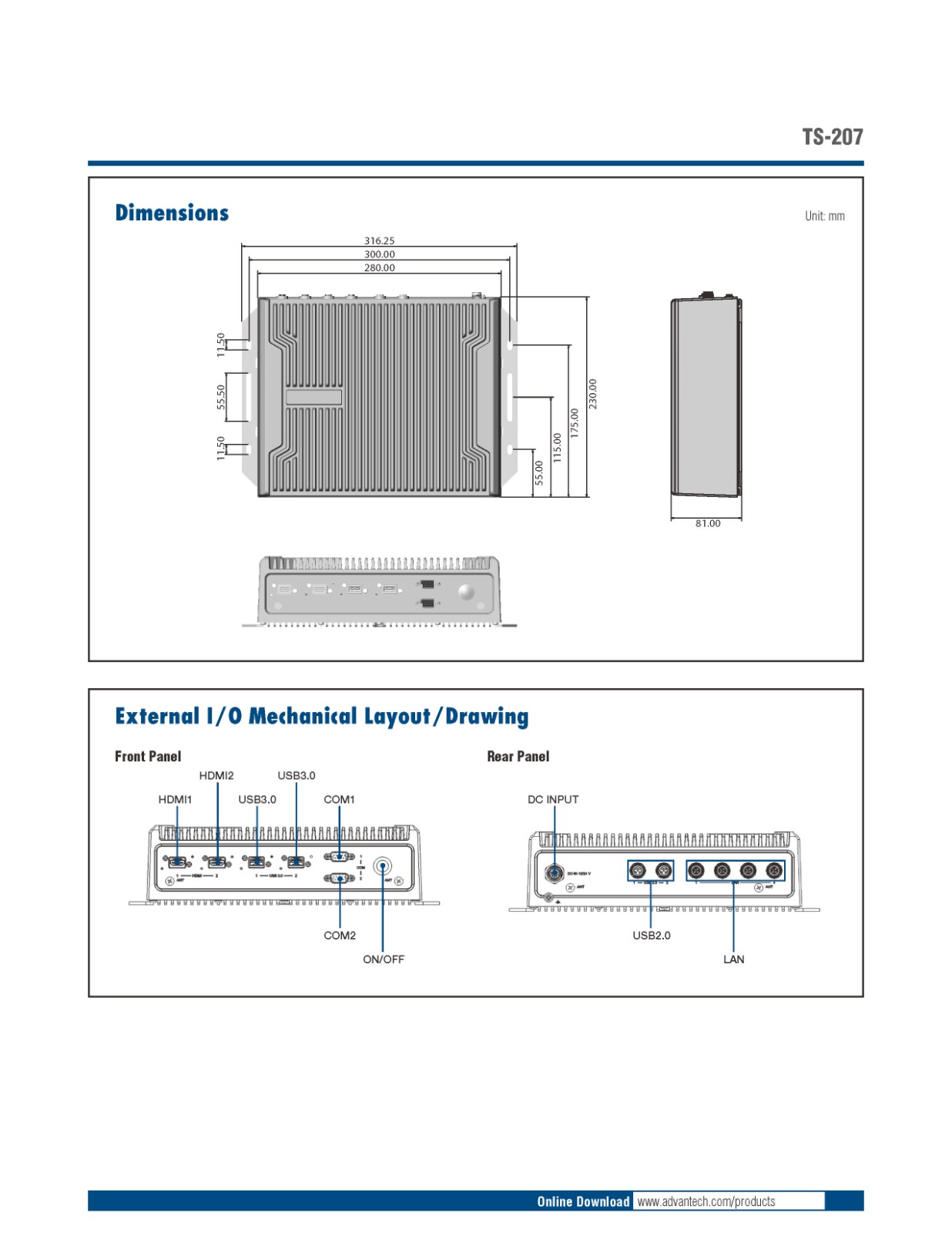 TS-207由于搭载强大的第11代Intel处理器,为户外显示和边缘AI应用提供了理想的基础。可靠的无风扇设计,可在-40 ~70°C环境下工作,外壳有IP65防护等级,保护设备免受水和灰尘的污染。