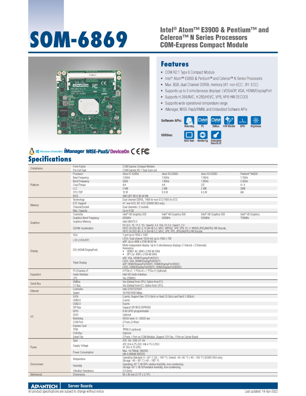 采用Intel®SDM插槽式设计,易于安装和维护 支持Microsoft Windows 10,具有经过验证的兼容性 支持真正的4K分辨率 3个独立显示屏:Golden Finger (HDMI 2.0, DP1.2), Front托架(mini dp++) 双通道DDR4 2400/2666 SO-DIMM,最大32gb 第八Intel®Core™i3-8100H, i5-8400H处理器,第九Intel®Core™赛扬G4930E 英特尔SDM-L(智能显示模块-大)的形式因素 无RED认证