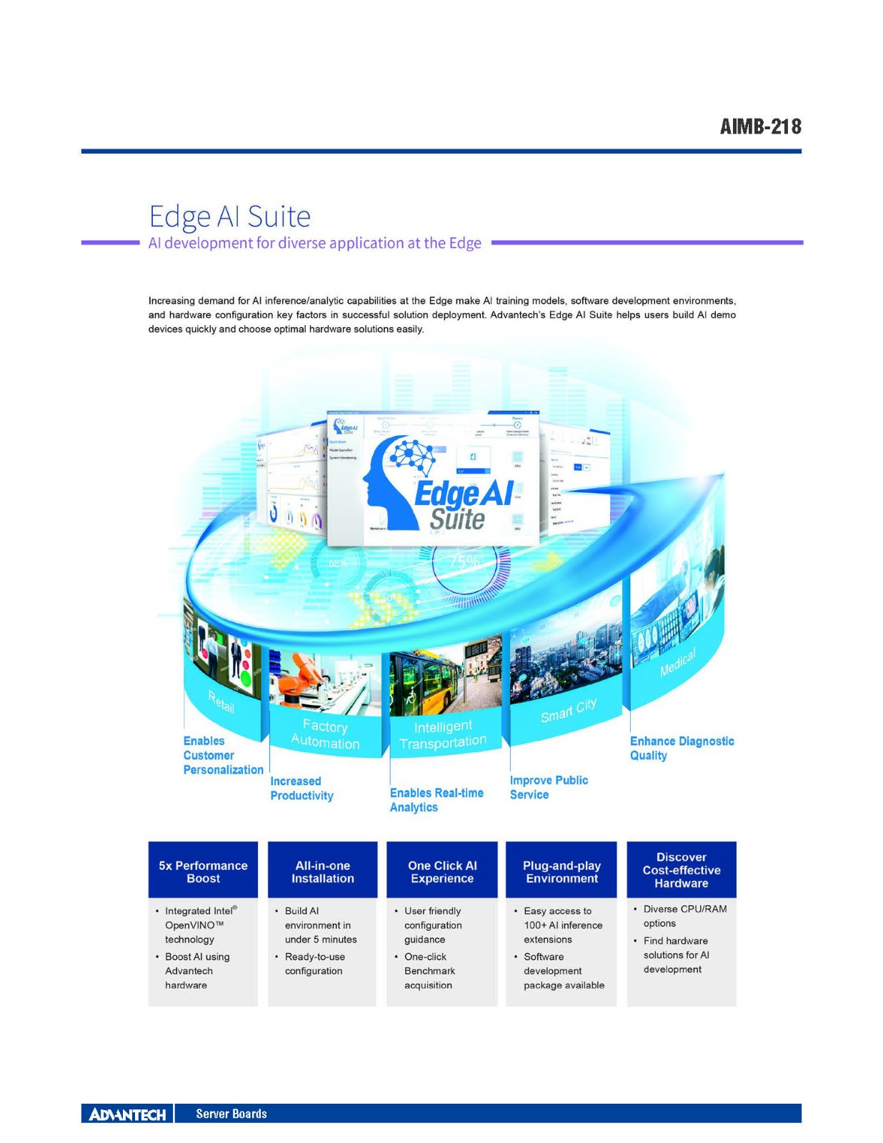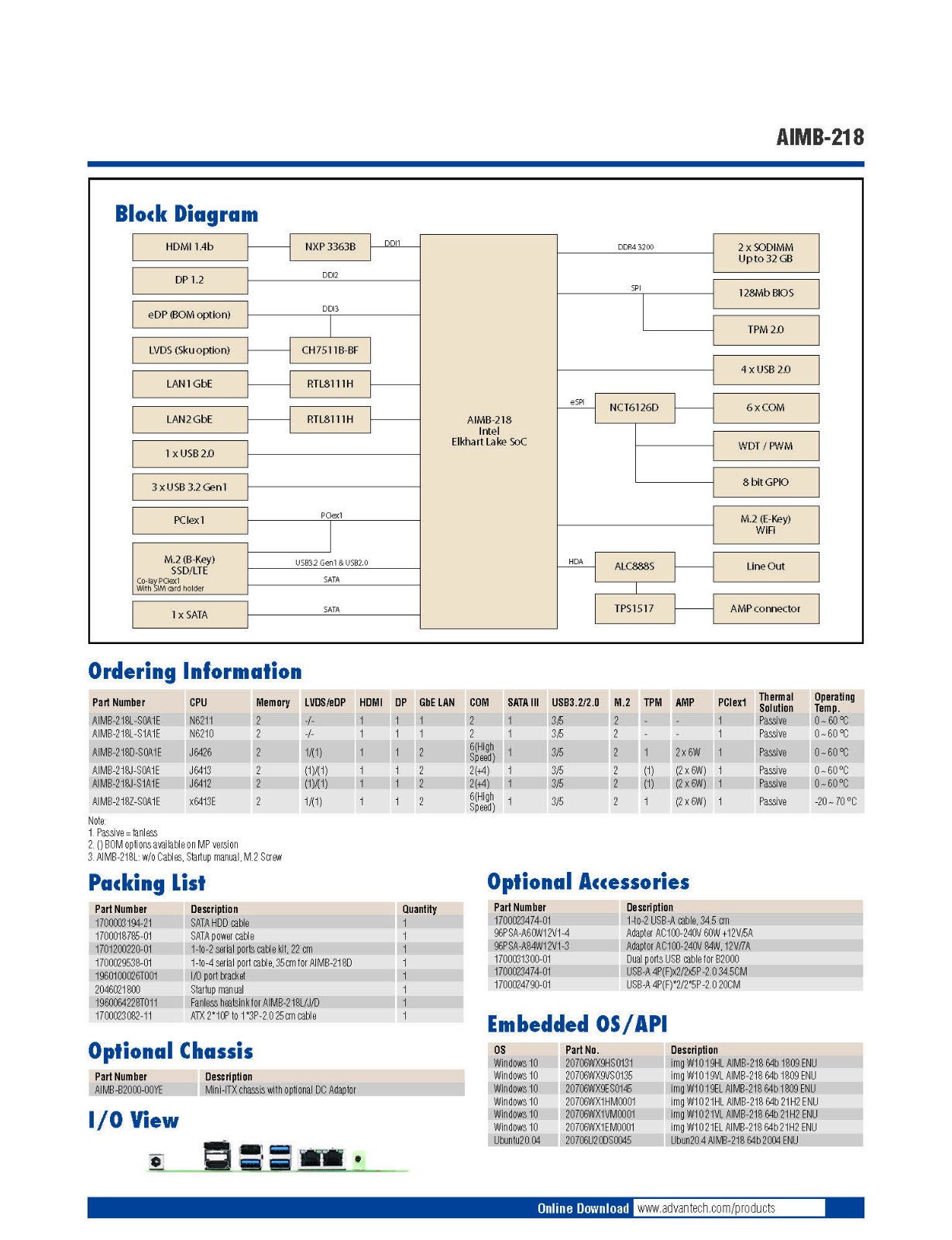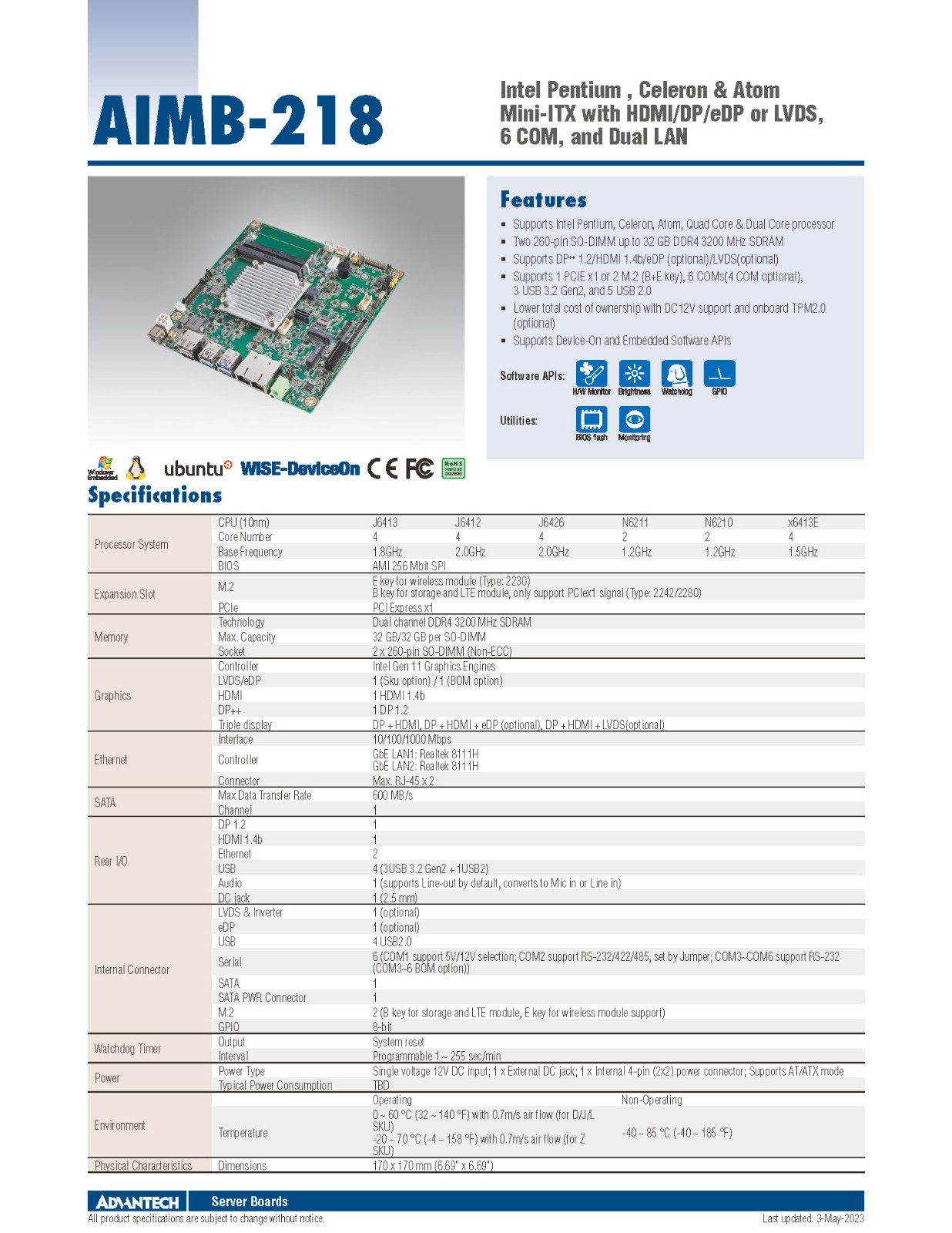 AIMB-218是一款Mini-ITX版型的工业主板,板载Intel 第8代 奔腾、赛扬、凌动多系列处理器。支持独立三显,提供SIM卡插槽,支持4G通讯,提供丰富稳定的I/O接口和硬件功能接口,丰富的可扩展性支持,超薄无风扇且功耗低,拥有宽温设计。适合不同垂直应用。